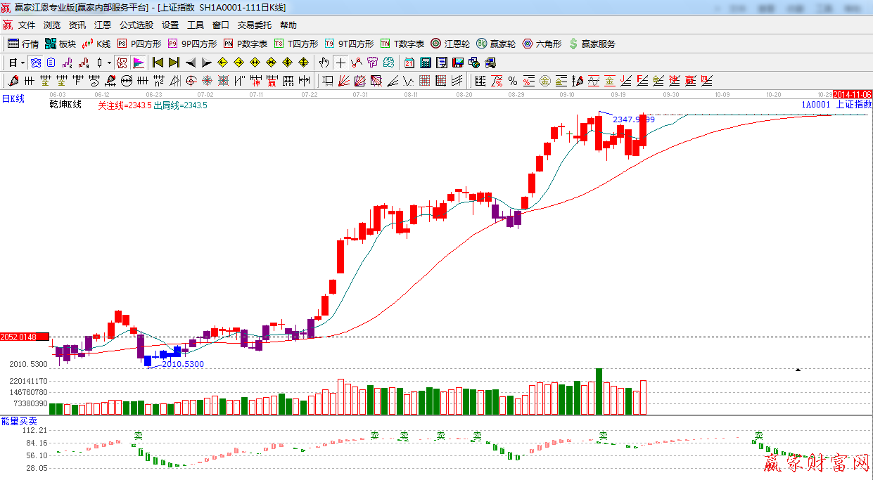 周三前一小時,指數(shù)低開高走,突破短周期60分周期生命線2312點,繼續(xù)放量上 行,終盤以中陽線報收,截止收盤,滬指報2343.57點漲1.47%,深成指報8100.22 點漲1.69%。