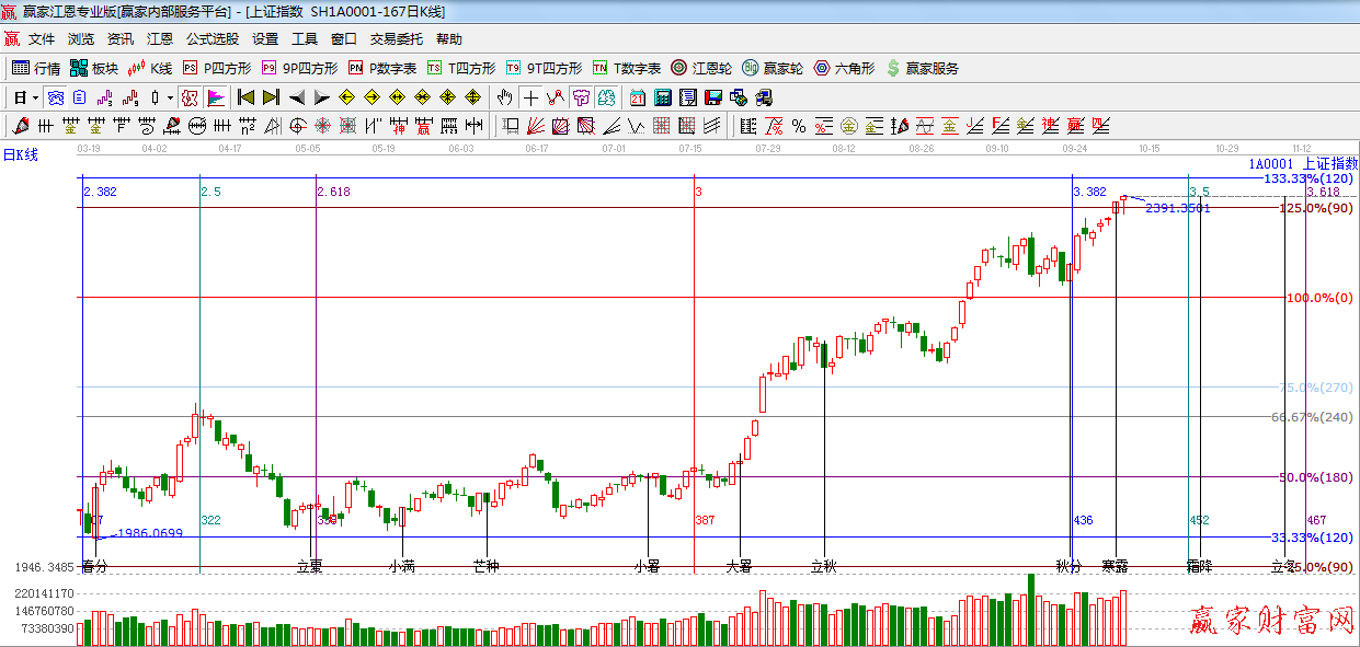 ☆依據(jù)贏家江恩系統(tǒng)黃金時間周期線提示:今日是寒露時間節(jié)點,下一時間窗口10月22日。