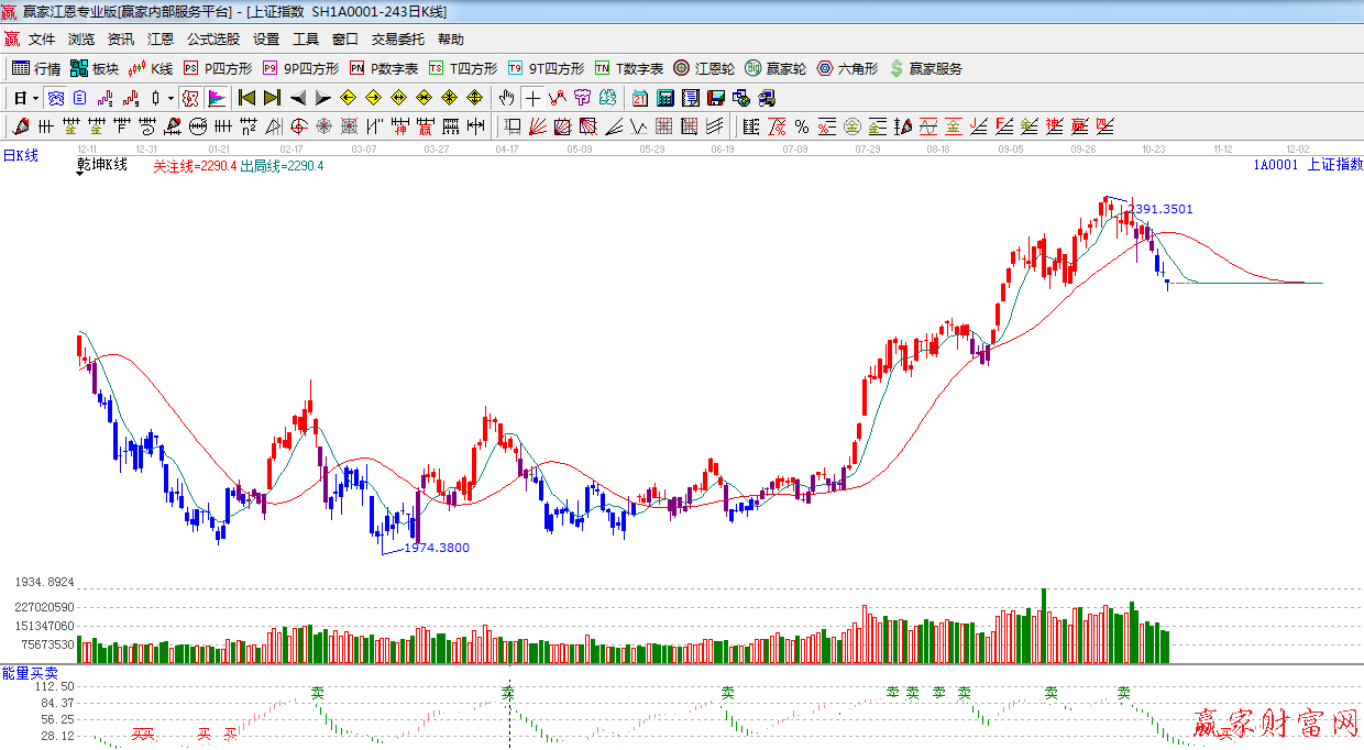 ★依據(jù)贏家江恩系統(tǒng)波段百分比提示:今日早盤指數(shù)低開破位2290點(diǎn) 在頸線位附近止跌小幅回升,頸線位支撐是2270點(diǎn)附近。