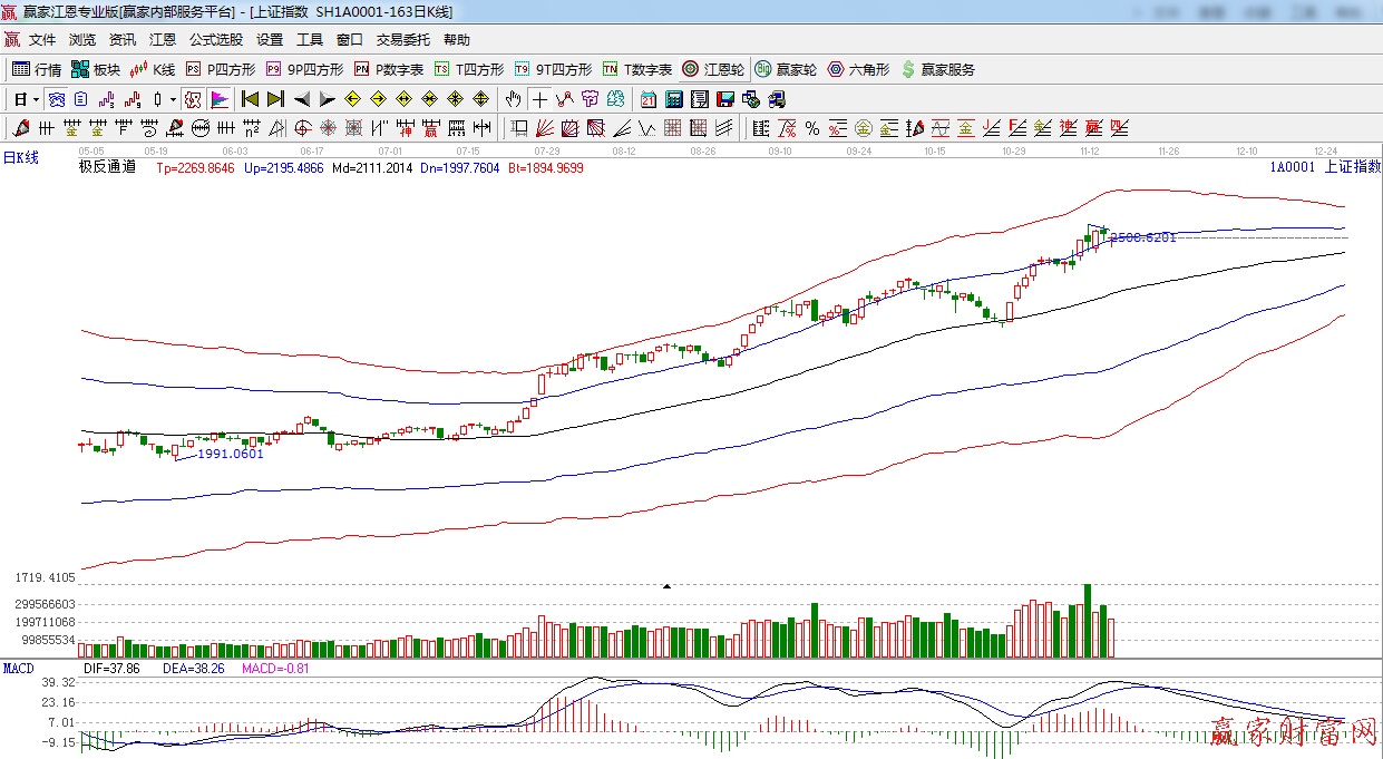 極反通道提示:圍繞藍(lán)色外軌線震蕩,T字線報(bào)收,短線看多。
