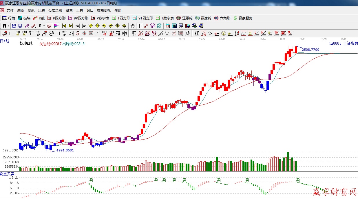 ☆依據(jù)贏家江恩系統(tǒng)能量買賣提示:處于多空臨界點(diǎn),并有“賣”字出現(xiàn),短線謹(jǐn)慎看多。