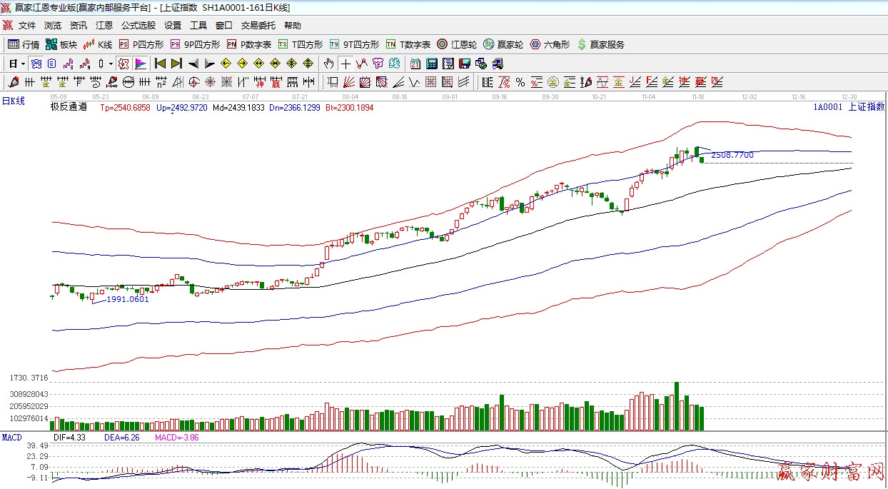 江恩看盤(pán)綜述:依據(jù)贏家江恩技術(shù)工具分析得出:昨日指數(shù)破位180度后,今日如期震蕩下行,11月11日的天量壓力需更時(shí)間來(lái)消化,所以短期市場(chǎng)震蕩調(diào)整走勢(shì)有望延續(xù),下方調(diào)整短期目標(biāo)位是江恩120度2410點(diǎn)或10月高點(diǎn)2391點(diǎn)。操作上,可適當(dāng)關(guān)注滬港通標(biāo)的稀缺性品種,比如中藥、白酒、軍工、以及重組題材股。