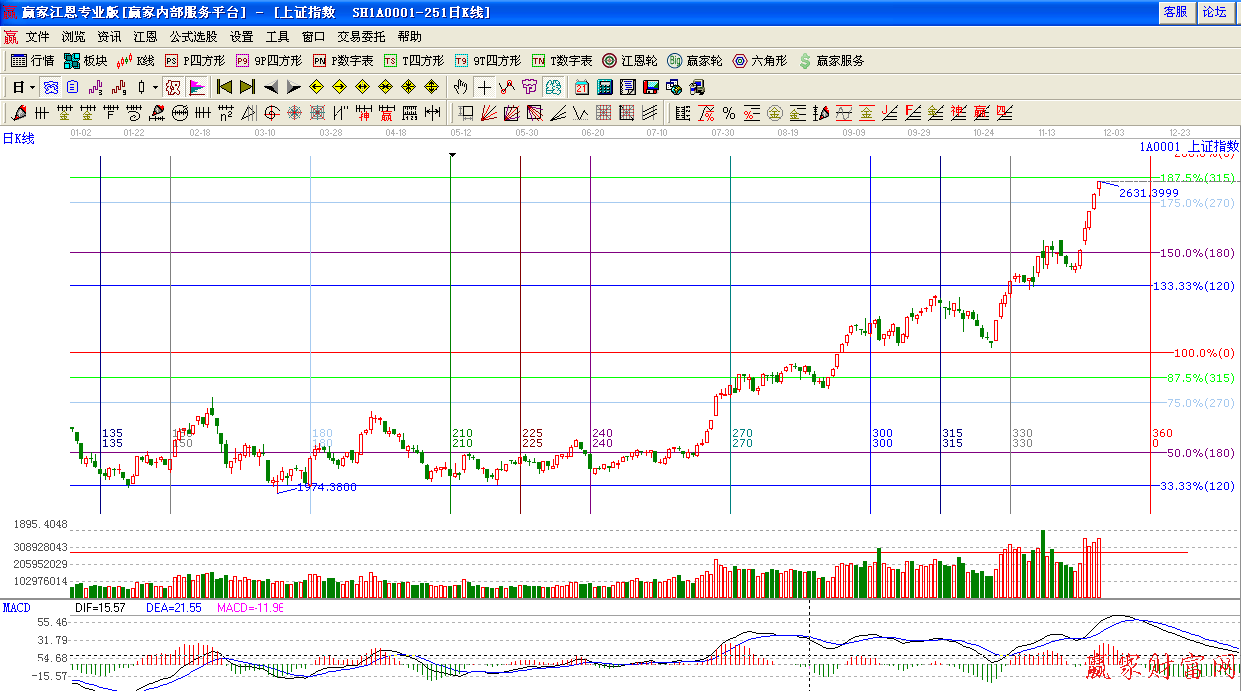 江恩看盤綜述:依據(jù)贏家江恩技術工具分析得出:滬深兩市繼續(xù)保持逼空上行態(tài)勢,盤中震蕩加劇,短線走勢有所分歧,按照工具分析,指數(shù)以到達極反通道紅色外軌阻力線,預計短期高位震蕩在所難免,操作上,適當控制倉位,謹慎對待。