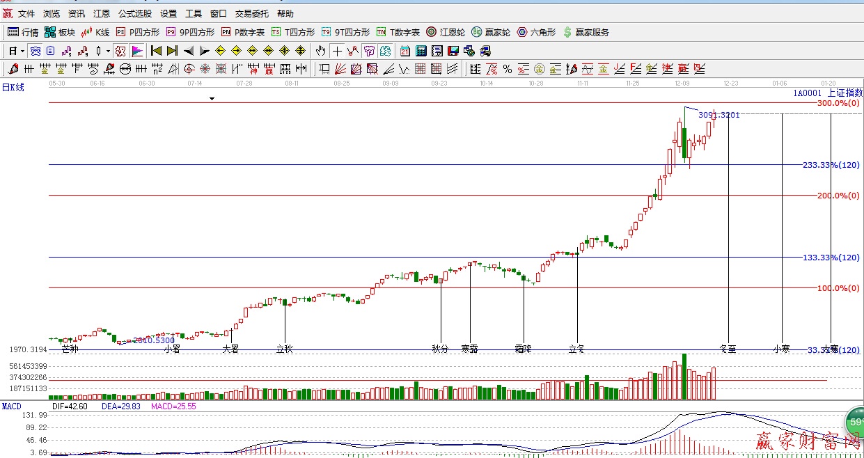 ★依據(jù)贏家江恩系統(tǒng)黃金時間周期線提示:12月12日時間之窗之后,指數(shù)繼續(xù)震蕩回升,留意后期量能情況,下一個時間之窗是24節(jié)氣的“冬至”節(jié)點。