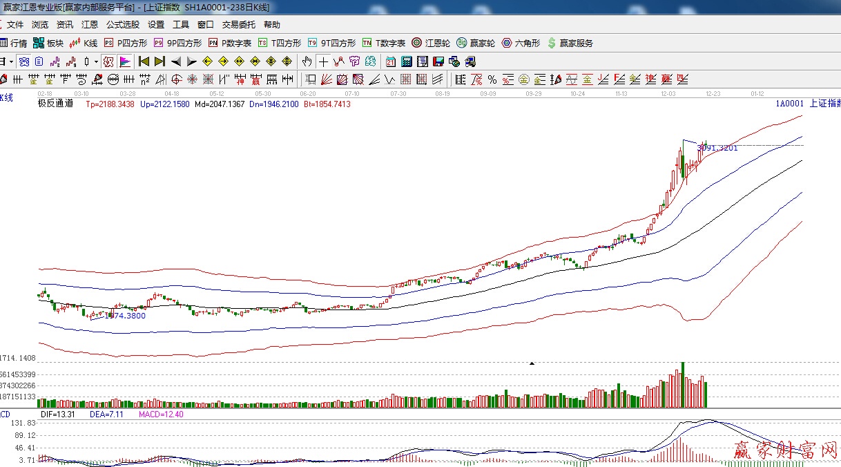 極反通道提示:指數(shù)沿紅色外軌線,繼續(xù)震蕩走高,依據(jù)規(guī)則外軌線不破,整體看多趨勢不變。