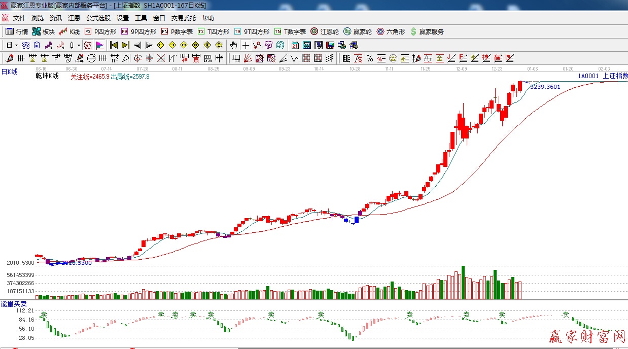 ★依據贏家江恩系統(tǒng)乾坤K線提示:日k線處于短線出局線上方,波段趨勢看多。