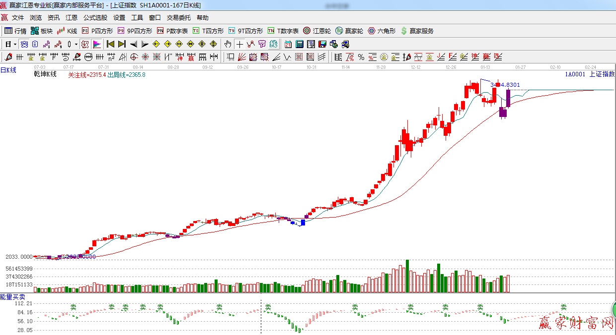 ★依據(jù)贏家江恩理論系統(tǒng)乾坤K線提示:紫色警示k線,反彈收復(fù)紅色關(guān)注線,短線看多。