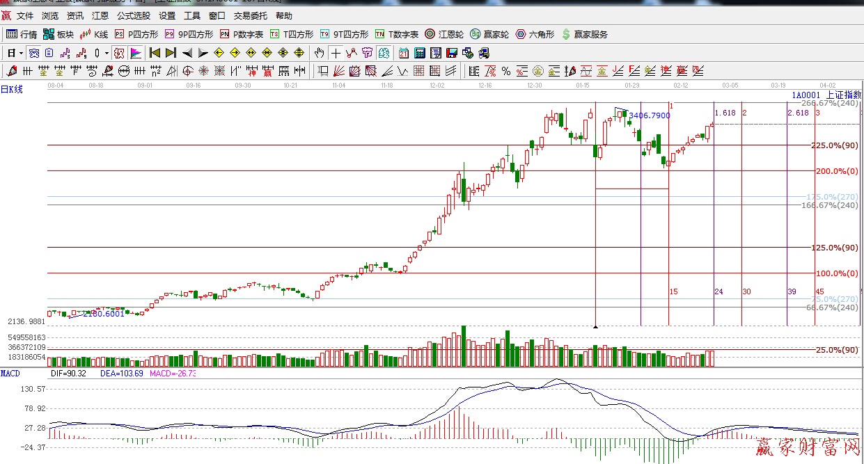 ★依據(jù)贏家江恩理論系統(tǒng)波段百分比提示:2月26日回踩江恩百分比90度支撐后,強勢回升,上方阻江恩百分比240度,3436點,270度,3486點,短周期阻力是3317-3362點。
