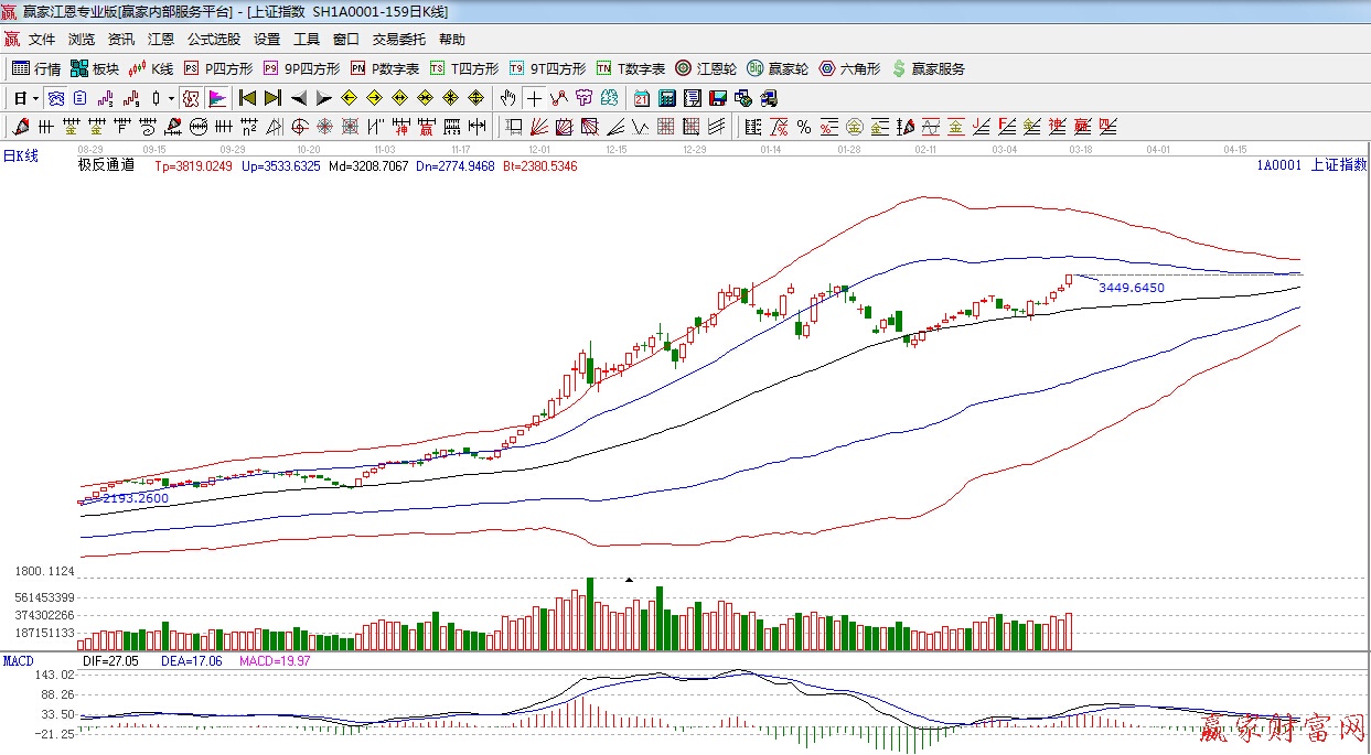 江恩看盤綜述:依據(jù)贏家江恩技術(shù)工具分析得出:16日是前期提到的時(shí)間之窗,盤面上,權(quán)重股與小盤股齊飛,滬指突破3406創(chuàng)出新高,市場隨著上周新股申購資金陸續(xù)解凍,市場有望加速上漲,沖擊2009年高點(diǎn)3478點(diǎn),但個(gè)股之間分化也會(huì)隨即出現(xiàn),操作上,對于近期大漲個(gè)股謹(jǐn)慎,國資改革、年報(bào)超預(yù)期個(gè)股可適當(dāng)關(guān)注。