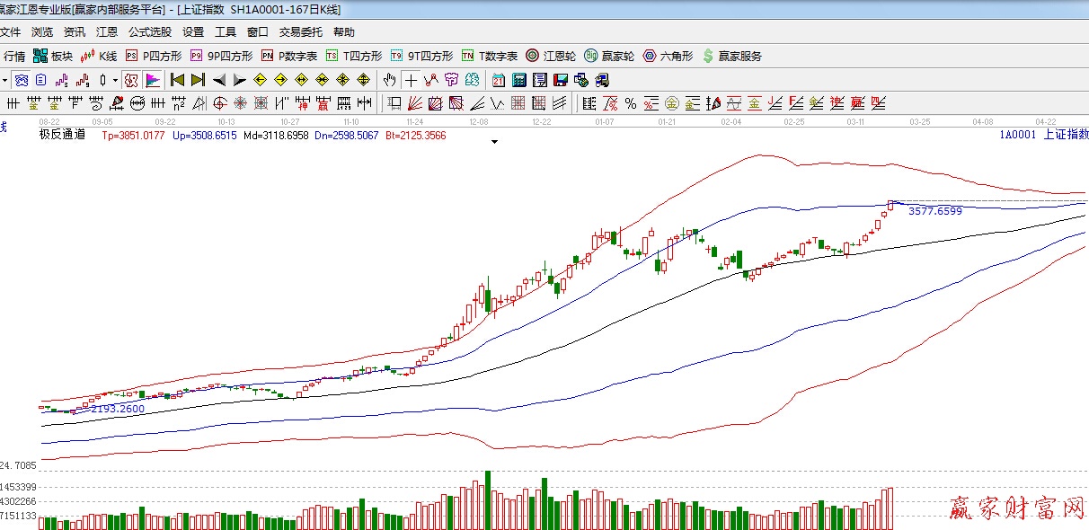 江恩理論系統(tǒng)黃金時(shí)間周期線提示:16日時(shí)間窗口,滬指如期沖關(guān),短期下一時(shí)間窗口是 3月23日,3月30日。