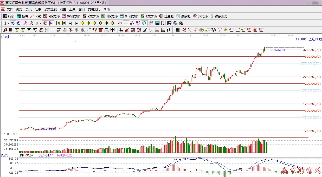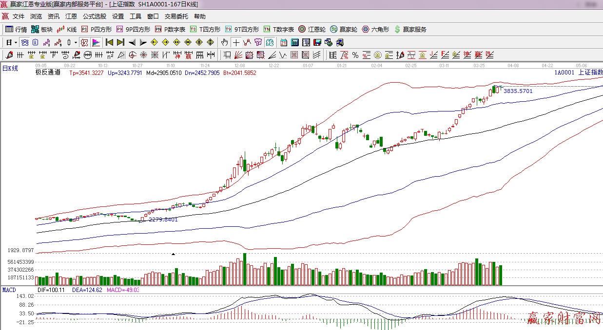 江恩看盤綜述:依據(jù)贏家江恩技術(shù)工具分析得出:周四盤面保持震蕩,板塊出現(xiàn)一定分化,盤中一度跳水尾盤迅速回升,資金承接力依然看漲,下方支撐江恩90度3783點(diǎn),此位置不破,短期震蕩上行或?qū)⒀永m(xù),盤中調(diào)整仍是機(jī)會(huì),由于頻臨外軌線之下,順勢的同時(shí)并保留一份謹(jǐn)慎。操作上,逢低繼續(xù)關(guān)注金融股,首選仍是券商;煤炭、有色、電力、化工;而國企改革、一帶一路等仍是中期關(guān)注焦點(diǎn)。此外,軍工、傳媒等題財(cái)股或反復(fù)活躍,可波段關(guān)注。