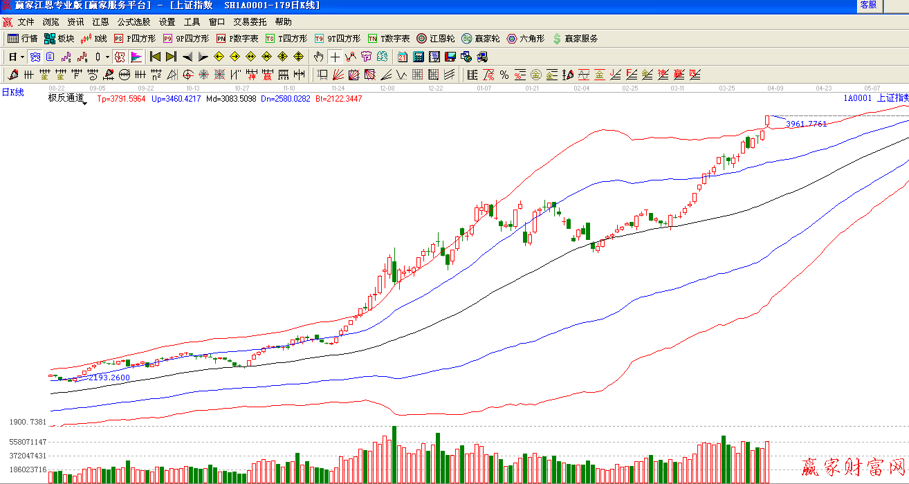 極反通道提示:跳空突破紅色外軌線,震蕩攀升,市場(chǎng)強(qiáng)勢(shì)依舊。