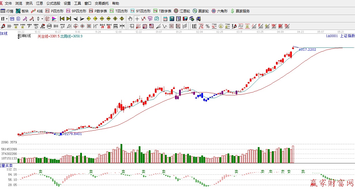 ☆依據(jù)贏家江恩理論系統(tǒng)能量買賣提示:有“賣”字出現(xiàn),指標(biāo)鈍化,謹(jǐn)慎看多。