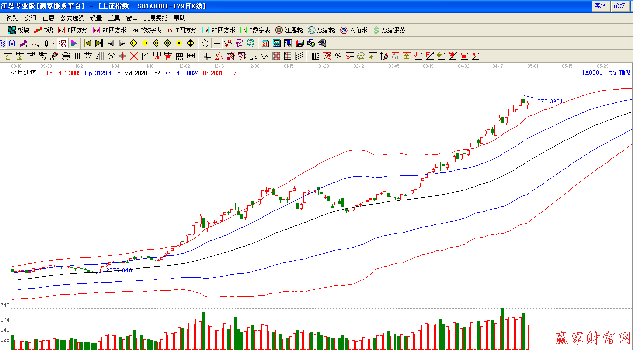 極反通道提示:紅色外軌超強(qiáng)區(qū)域,趨勢強(qiáng)勢,趨勢看多。