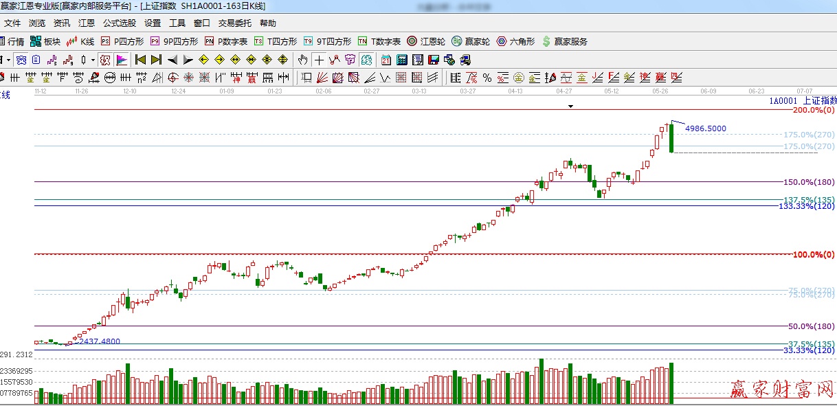 江恩看盤綜述:依據(jù)贏家江恩技術工具分析得出:周四受匯金減持銀行股的利空影響,兩市股指大幅殺跌,滬指重挫321點,今天的下跌是多項因素共同作用導致結果,但調整僅是在清理獲利盤,只要政策面不出臺大調控政策,市場在充沛的量能支撐下,指數(shù)回調空間及時間是都很有限,震蕩修復后依舊存在上漲的基礎,時間上下一窗口留意6月8日附近。操作上,布局標的方面更應避高就低,尋找那些有利好預期支撐,勿盲目追高。