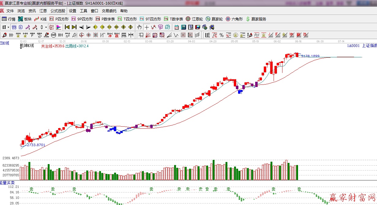 ☆依據(jù)贏家江恩理論系統(tǒng)能量買賣提示:紅色量柱較前期有背離,有“賣”字出現(xiàn),謹慎看多。
