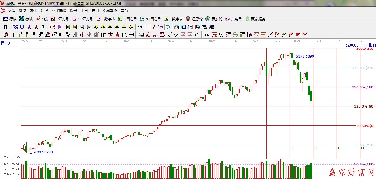 ☆依據(jù)贏家江恩理論系統(tǒng)輪中輪變盤點(diǎn)提示:進(jìn)入短線時間窗口6月29日,30日。
