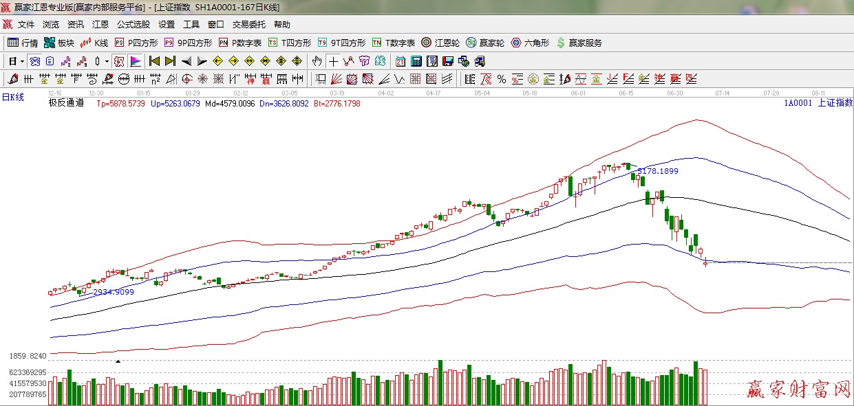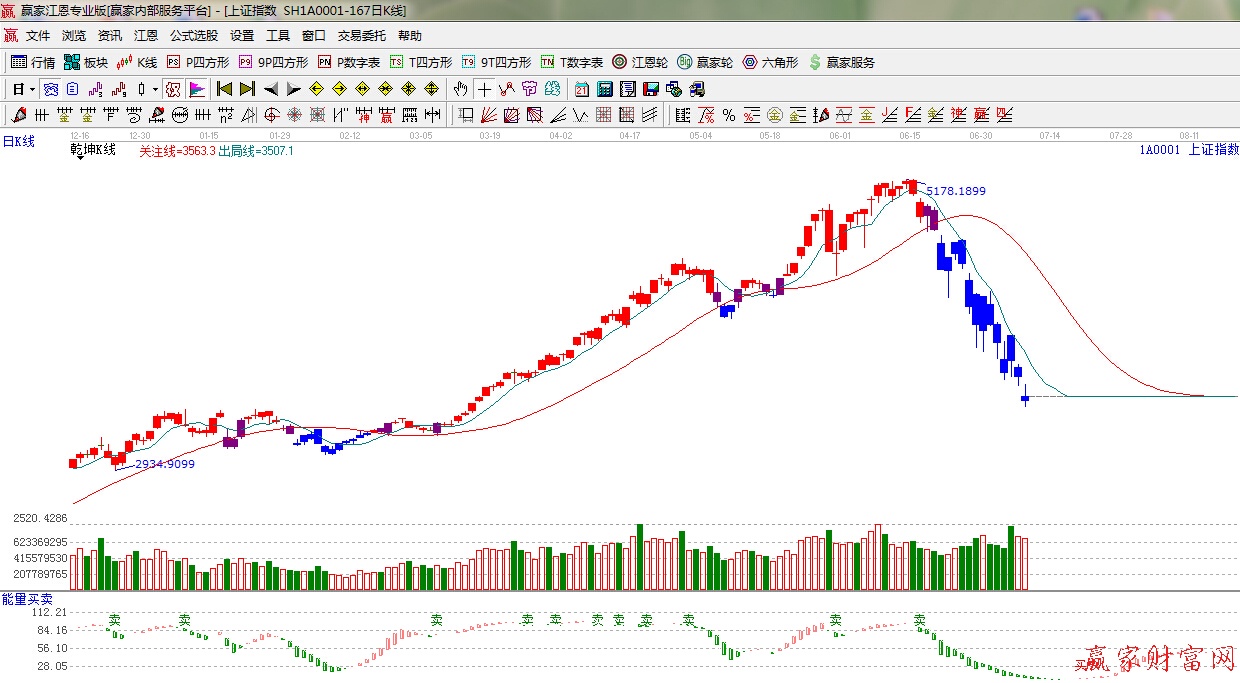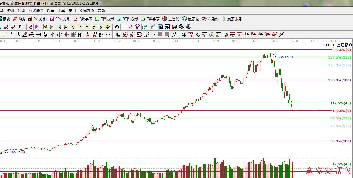 江恩看盤(pán)綜述:依據(jù)贏家江恩技術(shù)工具分析得出:滬指周三大幅下挫,跌6%險(xiǎn)守3500點(diǎn),深成指和創(chuàng)業(yè)板指表現(xiàn)相對(duì)較強(qiáng),盤(pán)面上,無(wú)熱門(mén)板塊,個(gè)股各自為戰(zhàn)。滬指經(jīng)過(guò)連續(xù)的下跌,下方面臨支撐是江恩315度附近,整體市場(chǎng)處于一個(gè)探底過(guò)程中,操作上不可盲目搶反彈。必須等市場(chǎng)跌停個(gè)股大幅減少,漲停個(gè)股增加,市場(chǎng)人氣恢復(fù),方能抄底。建議投資者利用近期波動(dòng),高拋低吸降低持倉(cāng)成本。
