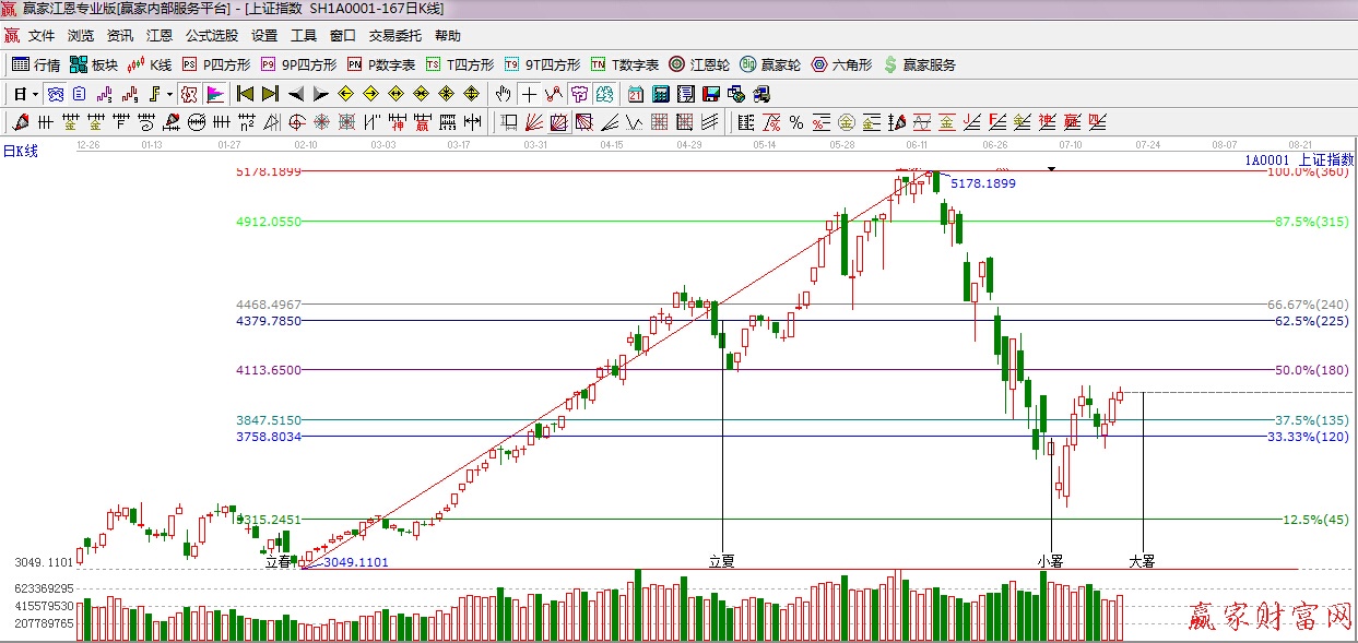 江恩理論系統(tǒng)輪中輪變盤點提示:下一時間窗口是大暑 7月23日。