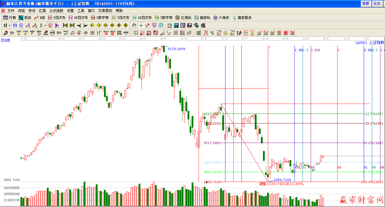 ☆依據(jù)贏家江恩理論系統(tǒng)極反通道提示:今日圍繞60分外軌線,震蕩整理。日線生命線阻力3376點(diǎn)附近。