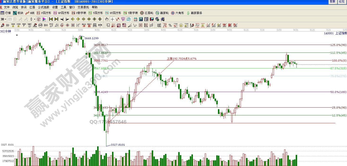 江恩看盤綜述:依據(jù)贏家江恩技術(shù)工具分析得出:周五指數(shù)的表現(xiàn)可以看出,主要拉的是指數(shù),隨后滬指在短周期15.30分周期阻力位遇阻回落,指數(shù)短期內(nèi)仍有回落調(diào)整需求,周一關(guān)注短期支撐3560點3543點,隨著整體市場不利因素逐步消退,短期調(diào)整后仍會再次上行。操作上,中線可逢低繼續(xù)布局。而對于創(chuàng)業(yè)板為首的小盤股,反彈中可重點關(guān)注。