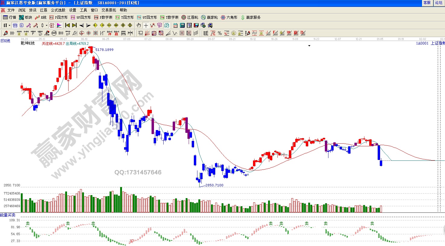 ☆依據贏家江恩理論系統(tǒng)乾坤K線提示:紫色警示k線之后,巨陰破位紅色關注線,藍色休息區(qū),看空?! ?/div>