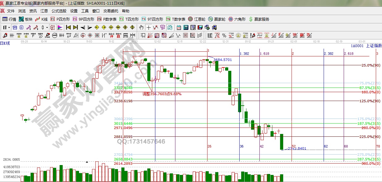 江恩看盤綜述:依據(jù)贏家江恩技術(shù)工具分析得出:第二個60分鐘縮量回升,見階段高點遇阻回落,午后展開跳水,再次打擊了市場人氣,近期在央行不斷地釋放流動性的同時,指數(shù)再次瘋狂下殺往往加速趕底的意味更濃,江恩下一時間窗口是2月1日左右,投資者可調(diào)整倉位備戰(zhàn)新的機會,短線支撐留意2703,2658點,激進者可輕倉逢低低吸差價。
