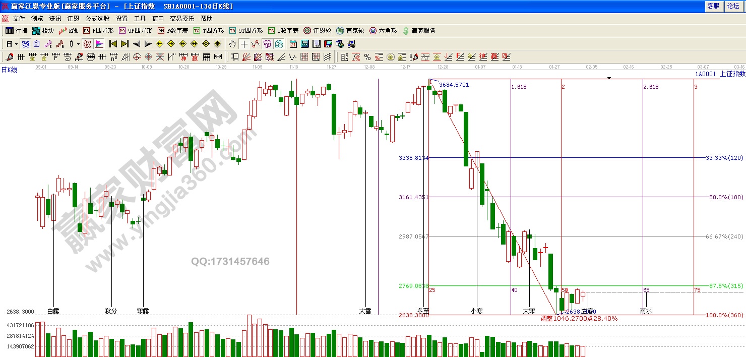 ★ 依據(jù)贏家江恩理論系統(tǒng)黃金時間周期線提示:在2月1日時間窗口之后,下一時間窗口“立春”2月4日。