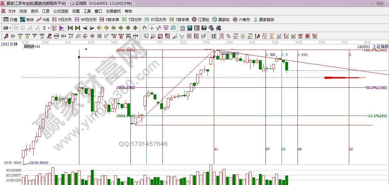 ☆ 依據(jù)贏家江恩理論系統(tǒng)江恩波段百分比線提示:周一沖擊3000點(diǎn)遇阻回落,下方支撐、2930點(diǎn),2900點(diǎn)附近。