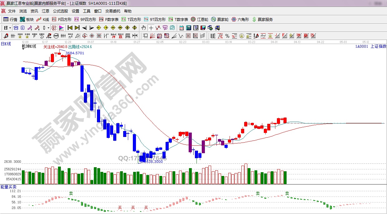☆ 依據(jù)贏家江恩理論系統(tǒng)能量買賣提示:紅色能量柱縮短,并有“賣”字出現(xiàn)適當(dāng)謹(jǐn)慎。