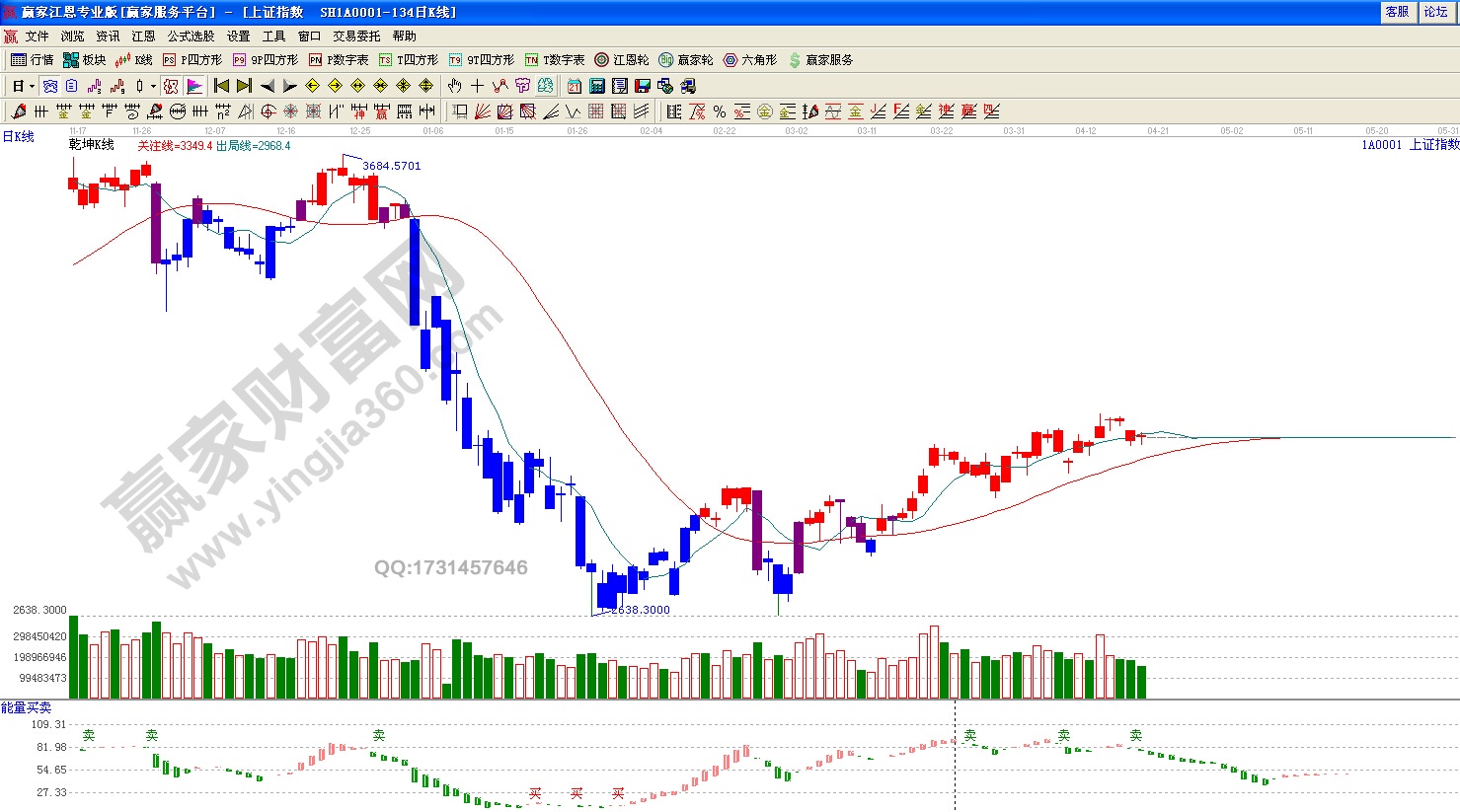 ☆ 依據(jù)贏家江恩理論系統(tǒng)能量買賣提示:紅色能量柱縮短,并有“賣”字出現(xiàn)適當(dāng)謹(jǐn)慎。