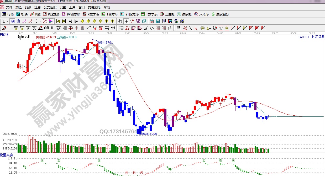 ☆依據(jù)贏家江恩理論系統(tǒng)能量買賣提示:綠色看空能量柱有縮短跡象,或有短線反彈動(dòng)作。