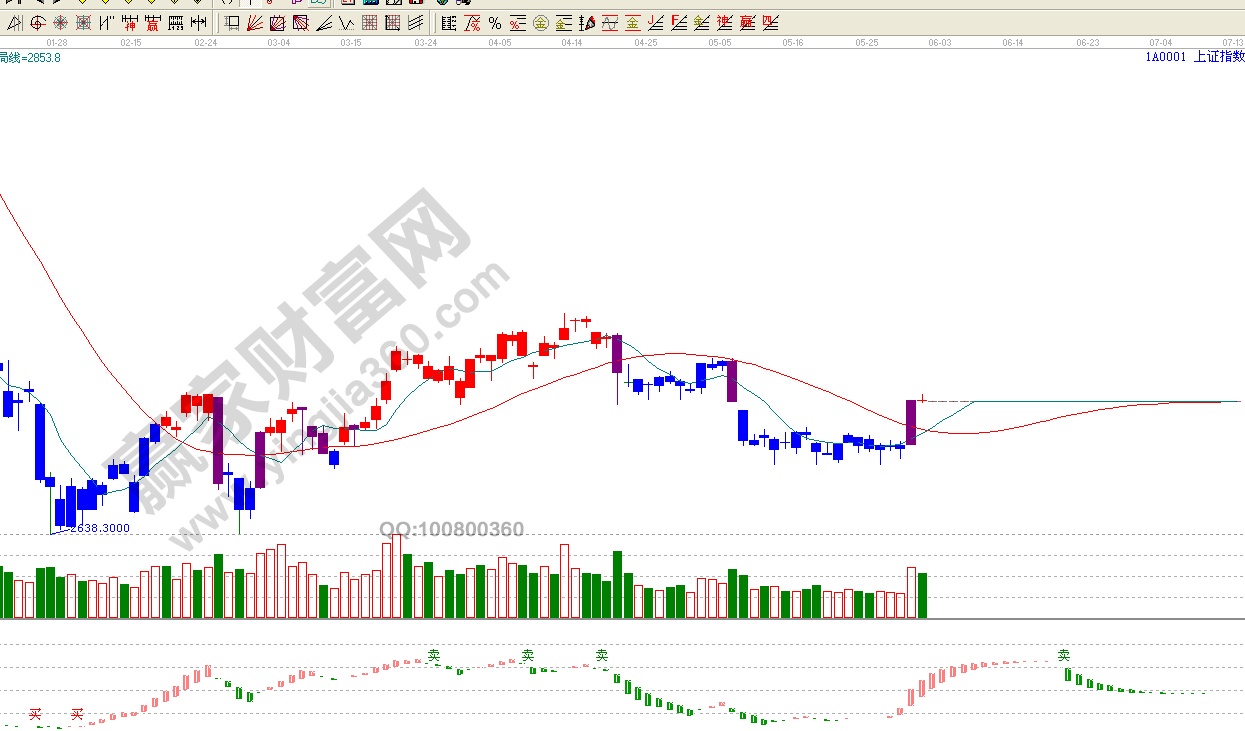 ★依據(jù)贏家江恩理論系統(tǒng)乾坤K線提示:紫色k線,轉入紅色k線,看多