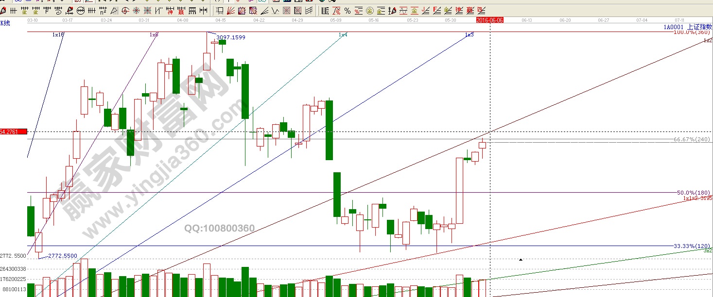 ★依據(jù)贏家江恩理論系統(tǒng)江恩波段百分比線提示:接下來短期阻力位依然是2950點。以及上升角度線的1x2線。