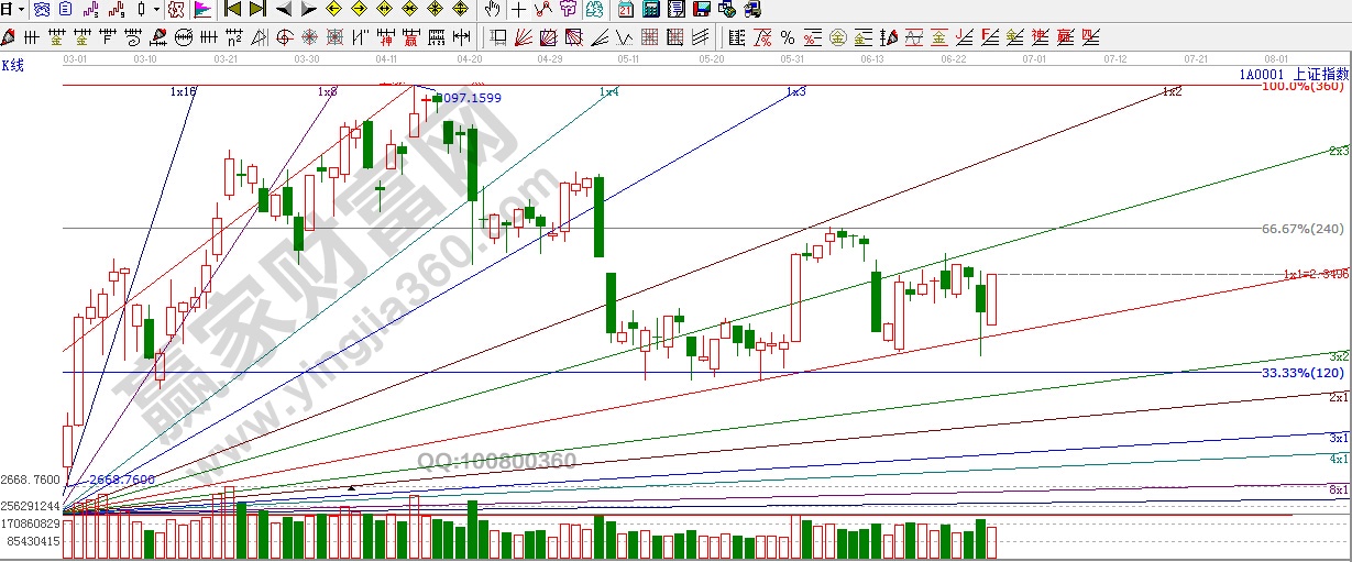 江恩看盤綜述:依據(jù)贏家江恩技術(shù)工具分析得出:周一大盤低開,但未延續(xù)上周五的跌勢,反而快速翻紅,收盤陽線反包上一交易日k線,有出現(xiàn)轉(zhuǎn)好跡象,但滬指上方壓力依舊存在,后期如能放量收復(fù)極反通道生命線并一舉拿下2920點的話,市場將會有更多的資金入場,上漲空間也將被大幅打開。24日窗口之后,時間窗口是7月5日,12日。