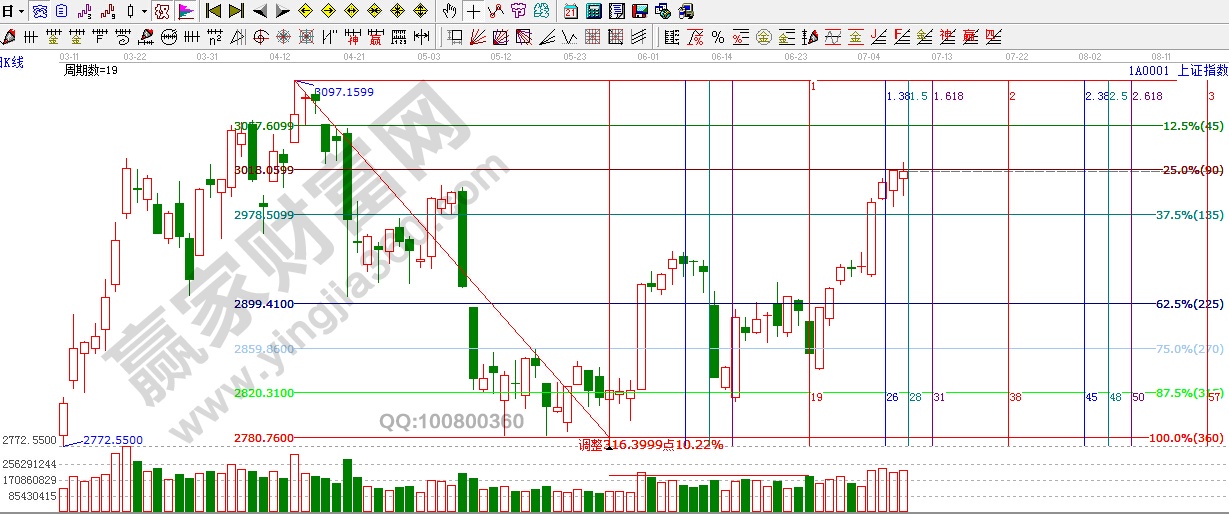 江恩看盤(pán)綜述:依據(jù)贏家江恩技術(shù)工具分析得出:今日走勢(shì)上出現(xiàn)分化,滬指在3018點(diǎn)位置遇阻震蕩,馬上極反通道也將面臨藍(lán)色線的阻力,另外還有4月跳空缺口,隨后市場(chǎng)震蕩會(huì)加劇,操作上,連續(xù)走高的個(gè)股,可適當(dāng)高拋等待低吸,如果是低位未啟動(dòng)又有業(yè)績(jī)支撐的品種,還可堅(jiān)定持有并在回調(diào)中大膽加倉(cāng)。