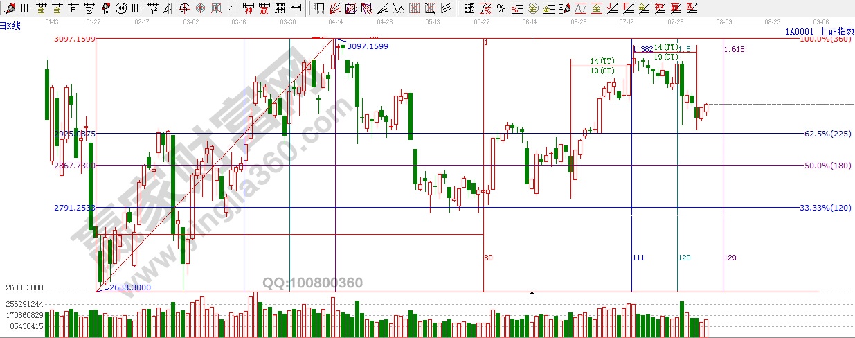江恩看盤綜述:依據(jù)贏家江恩技術(shù)工具分析得出:8月1日窗口,滬指下探在江恩225度止跌,近兩日如期迎來小幅反彈,量能上邊雖有放大,但不足以使使市場出現(xiàn)大幅反彈,周四價格上留意2985附近阻力,此位置如不能放量收復(fù),短線有望繼續(xù)休整,下一窗口留意8月8日,整體上,目前是短期階段性底部,整理后反彈或一觸即發(fā)。操作上,逢低可逐步加倉,重點(diǎn)關(guān)注中報(bào)高送轉(zhuǎn)標(biāo)的外,央企改革以及業(yè)績驅(qū)動標(biāo)的成為近期關(guān)注焦點(diǎn)。
