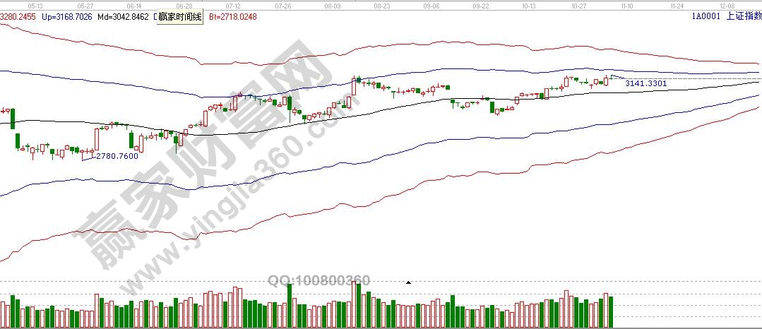 ★依據(jù)贏家江恩理論系統(tǒng)極反通道提示:滬指沖高回落,短周期60分生命線支撐3110點。阻力我日線藍色外軌線3160點附近。