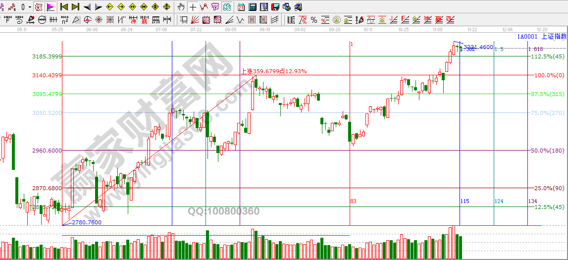 ★依據(jù)贏家江恩理論系統(tǒng)江恩波段百分比線提示:滬指在3200上方整理,支撐依然是45度位置3185點(diǎn)附近,阻力位是90度3230點(diǎn)附近,短期依然關(guān)注3230--3250之間的阻力位。