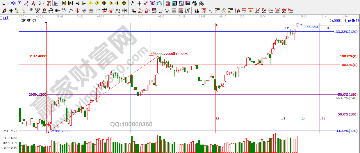★依據(jù)贏家江恩理論系統(tǒng)江恩波段百分比線提示:滬指繼續(xù)保持強勢,3250點轉(zhuǎn)換為支撐位,下一目標(biāo)位是3315點,3326點附近。