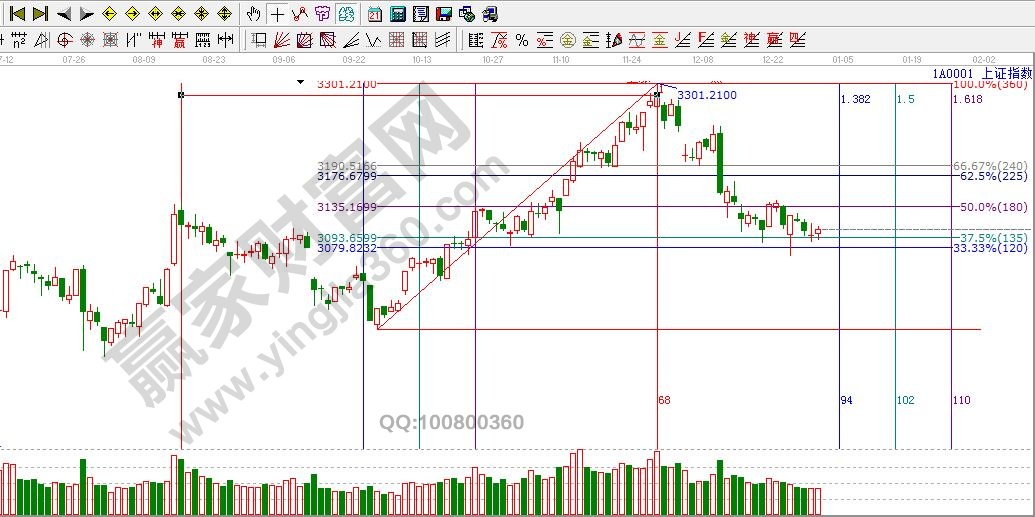 ★依據(jù)贏家江恩理論系統(tǒng)黃金時間周期線提示:股指縮量整理,接下來下一時間點是1月5日左右。