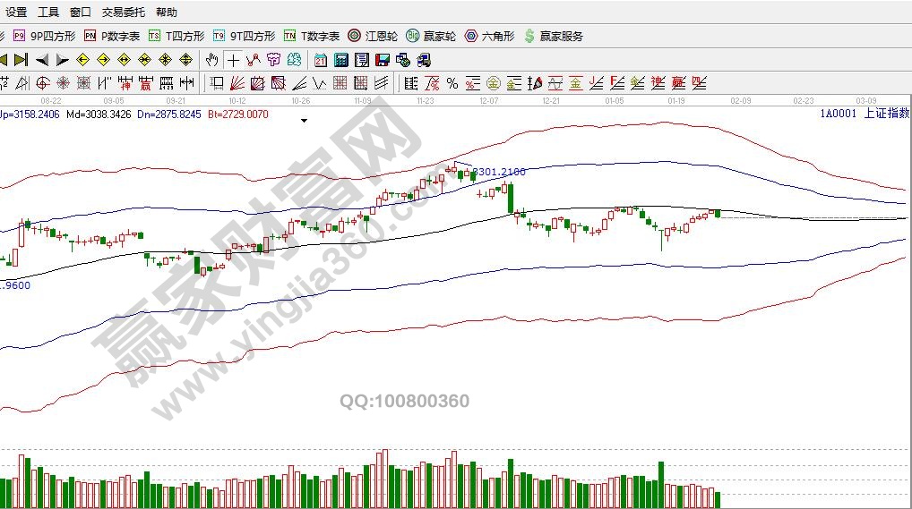 ★依據(jù)贏家江恩理論系統(tǒng)乾坤K線提示:滬指k線由紫色警示k線轉(zhuǎn)入紅色,出局線金叉關(guān)注線,依據(jù)規(guī)則紅色K線看多。