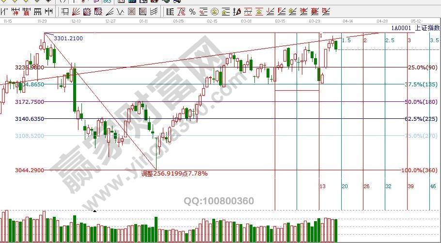 ★依據(jù)贏家江恩理論系統(tǒng)江恩波段百分比線提示:滬指朝著支撐位3249--3254點(diǎn)回踩,周二短線支撐3260點(diǎn),日線如不能站穩(wěn)3269點(diǎn),下方支撐在90度位置3236點(diǎn)附近