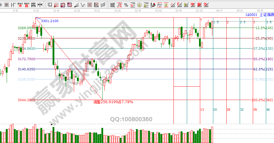 ☆依據(jù)贏家江恩理論系統(tǒng)黃金時(shí)間周期線提示:今日是一直提到的4月11窗口,股指跌開(kāi)高走,量能放大,依據(jù)規(guī)則,看多。