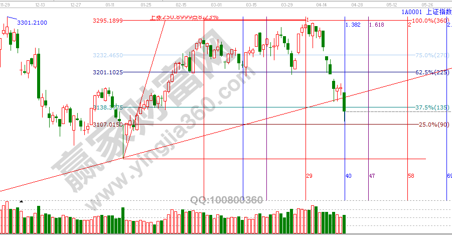 江恩看盤綜述:依據(jù)贏家江恩技術(shù)工具分析得出:周一,滬深兩市開盤后快速下跌,跌破了2638點(diǎn)以來的上行通道,總體下行趨勢依舊,但經(jīng)過連續(xù)殺跌之后,目前下跌動(dòng)能逐步衰竭,下方百分比90度線強(qiáng)支撐在3107點(diǎn)附近,另外25日是短線的時(shí)間窗口,所以預(yù)計(jì)短期修復(fù)后將有超跌反彈行情。操作上,倉位控制在5成以下,逢低試探性加倉。繼續(xù)關(guān)注國企改革、環(huán)保以及一帶一路概念等。