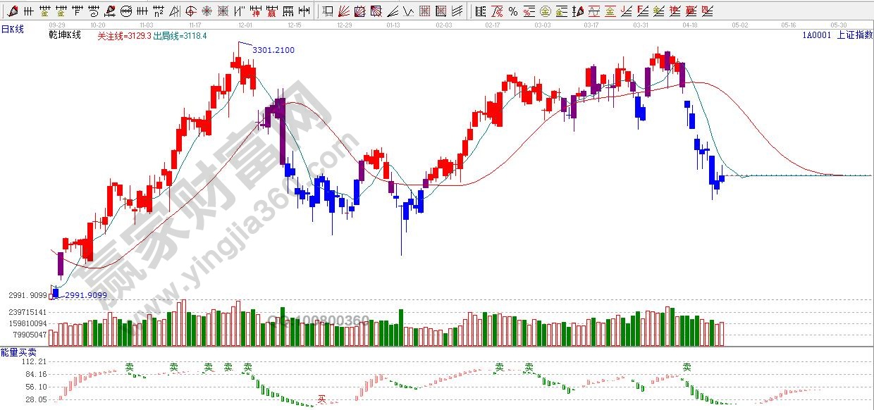 ☆依據(jù)贏家江恩理論系統(tǒng)能量買賣提示:綠色看空能量柱,依據(jù)規(guī)則看空。