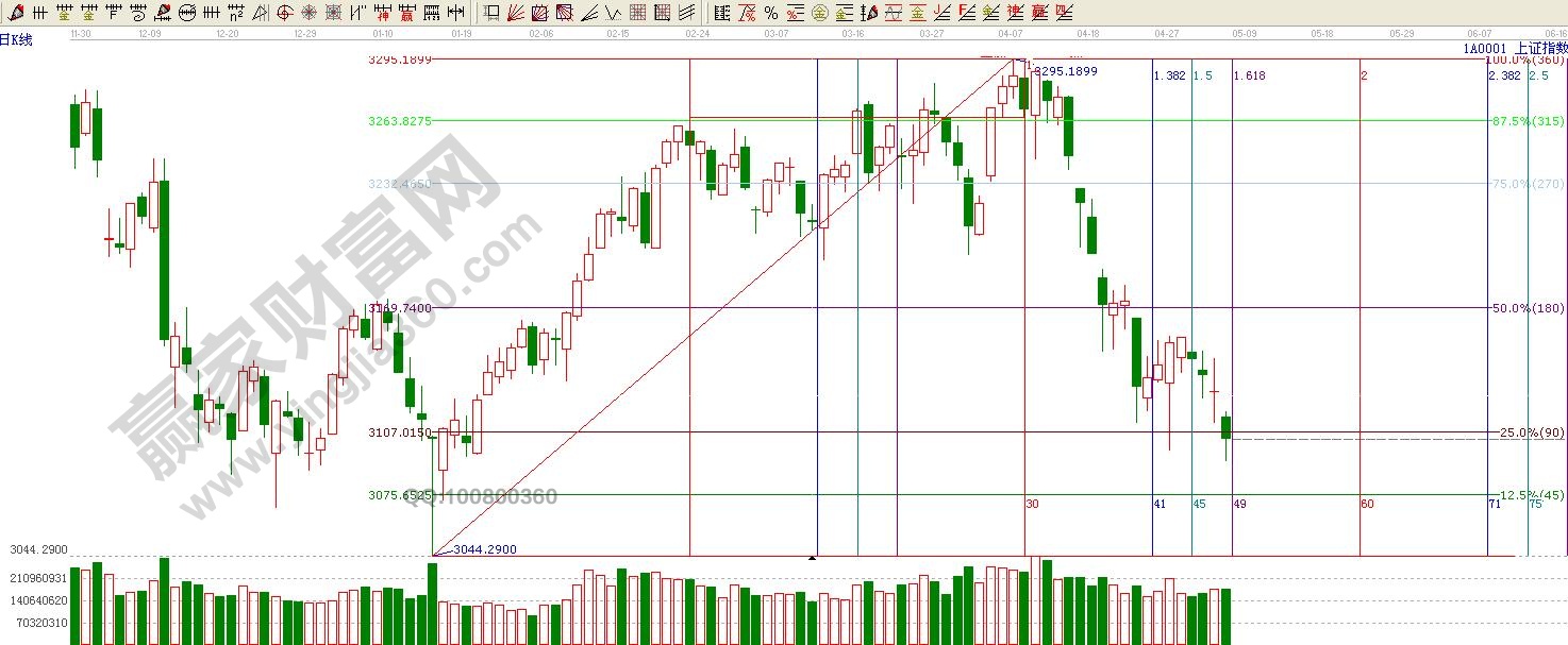 ☆依據(jù)贏家江恩理論系統(tǒng)黃金時間周期線提示:本周留意5月9日,以及后期的5月23附近。