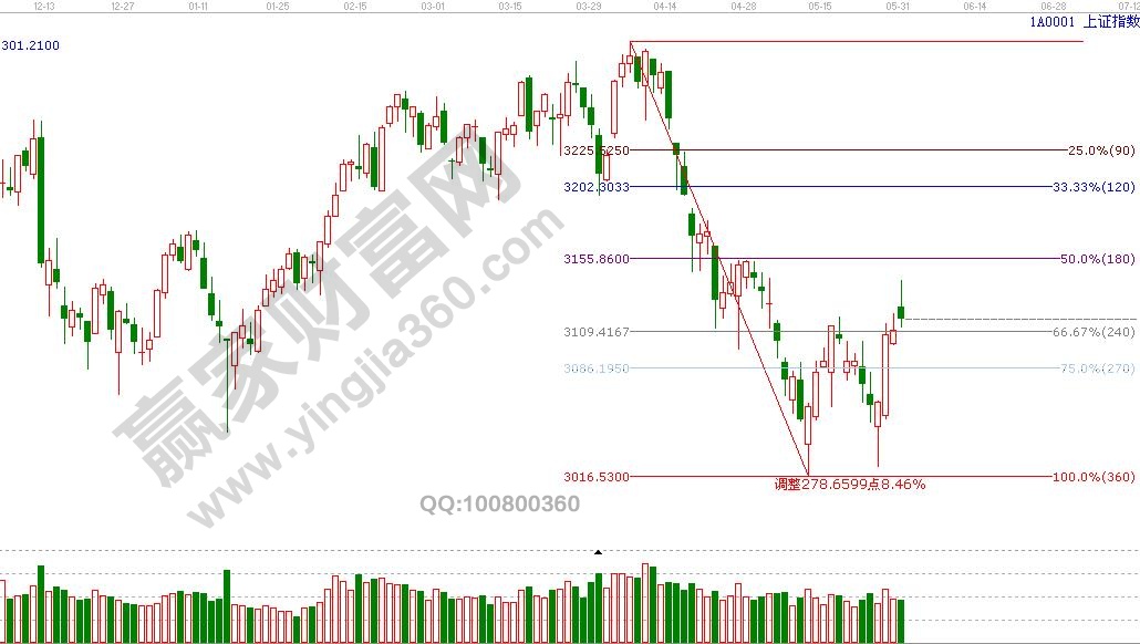 ★依據(jù)贏家江恩理論系統(tǒng)江恩波段百分比線提示:周三,滬指沖高回落,最高試探3143點(diǎn),短期目標(biāo)位是3155點(diǎn),3190點(diǎn)附近。支撐3109點(diǎn),3086附近。