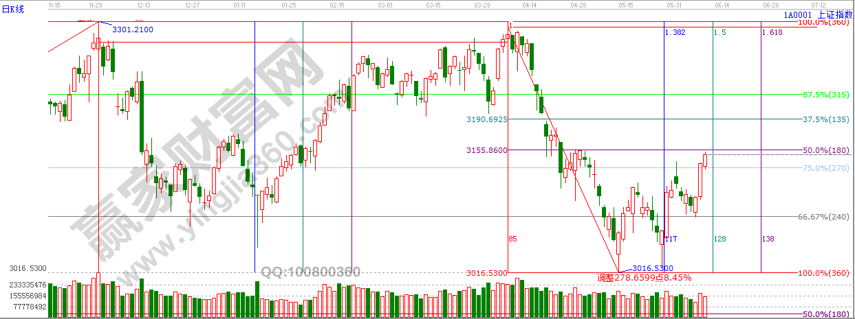 江恩看盤(pán)綜述:依據(jù)贏家江恩技術(shù)工具分析得出:周四,午后在保險(xiǎn)的帶領(lǐng)下,滬指如期向上試探日線生命線3155點(diǎn)附近,當(dāng)前60日線是3172點(diǎn)附近。3155--3172點(diǎn)構(gòu)成一個(gè)區(qū)間阻力,此區(qū)間指數(shù)大概率會(huì)有一個(gè)反復(fù)震蕩,支撐位暫時(shí)關(guān)注3135點(diǎn)附近。所以適當(dāng)控制倉(cāng)位,不可隨意追高,以低位潛伏為主。建議重點(diǎn)關(guān)注中報(bào)業(yè)績(jī)預(yù)期良好的超跌股,時(shí)間上,關(guān)注6月12日,6月23日。