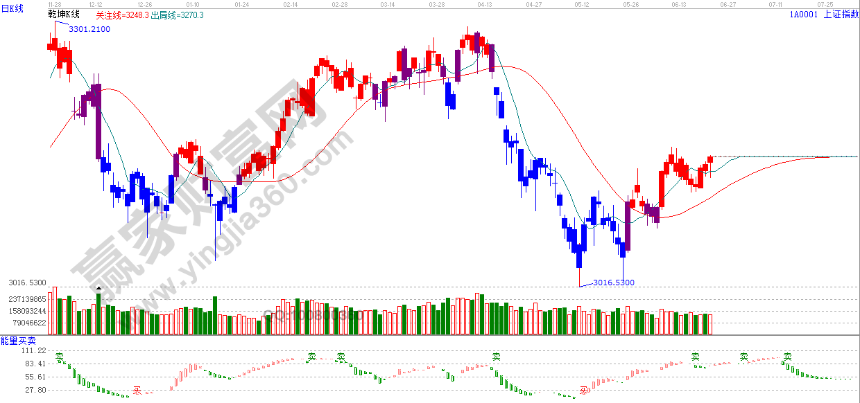 ☆依據贏家江恩理論系統(tǒng)能量買賣提示:“賣”字出現,紅綠柱子反復,須控制倉位。
